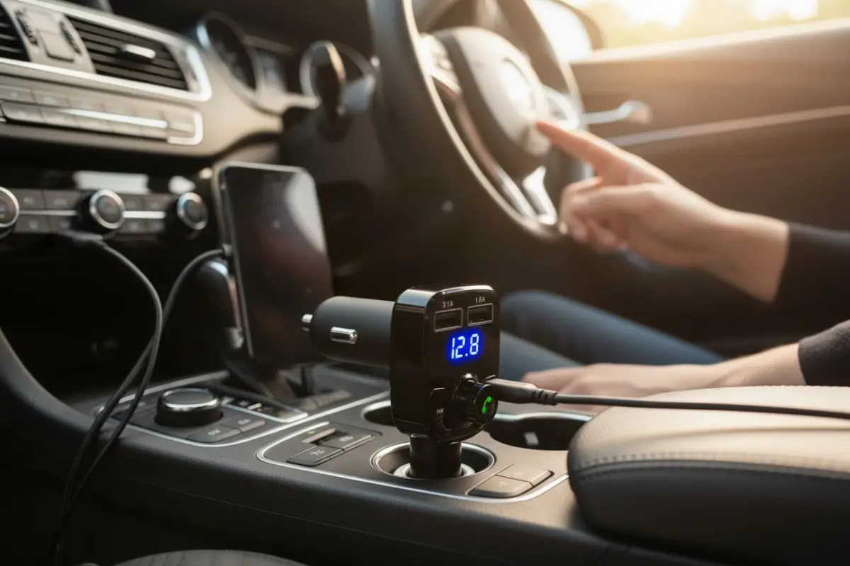 - Tecnología de Transmisión FM: Convierte la señal digital (Bluetooth/USB) en una frecuencia FM estable para ser sintonizada en el radio de tu vehículo.